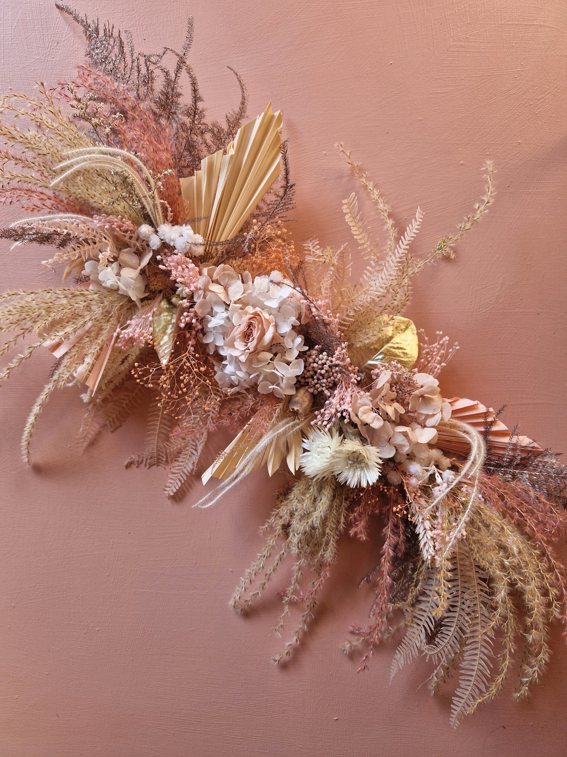 Nina – Longueur d’environ 40cm – Confectionnée à partir de fleurs séchées et stabilisées, pour une tenue durable et sans entretien.
